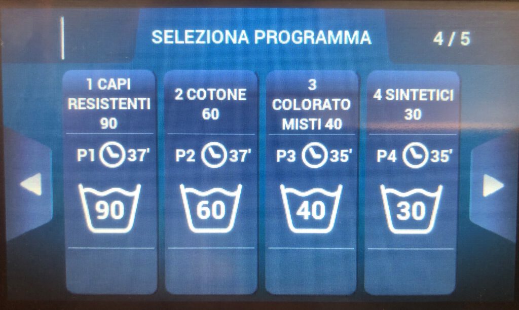 Le lavatrici sono di ultima generazione, governate da inverter elettronico attivo per un utilizzo efficiente dell’energia e dispongono di schermo a sfioramento (touch screen) per la scelta dei programmi e l’avviamento.